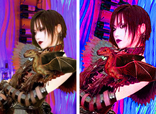 My dear online friend, BebopAuthor aka Lady Haig aka Grange Rutan, asked me to put up this photo of her. Newly invited and graciously accepting, she still is feeling her way around our august establishment---somewhat more difficult without the wise Bartender to lend a hand. Lady already has posted a couple of comments, and one of them describes her in her blue wig. She noticed our comment facility doesn't allow for images and worried a bit that people wouldn't understand what she was talking about. Being a lady top to toe, she asked for a bit of assistance.